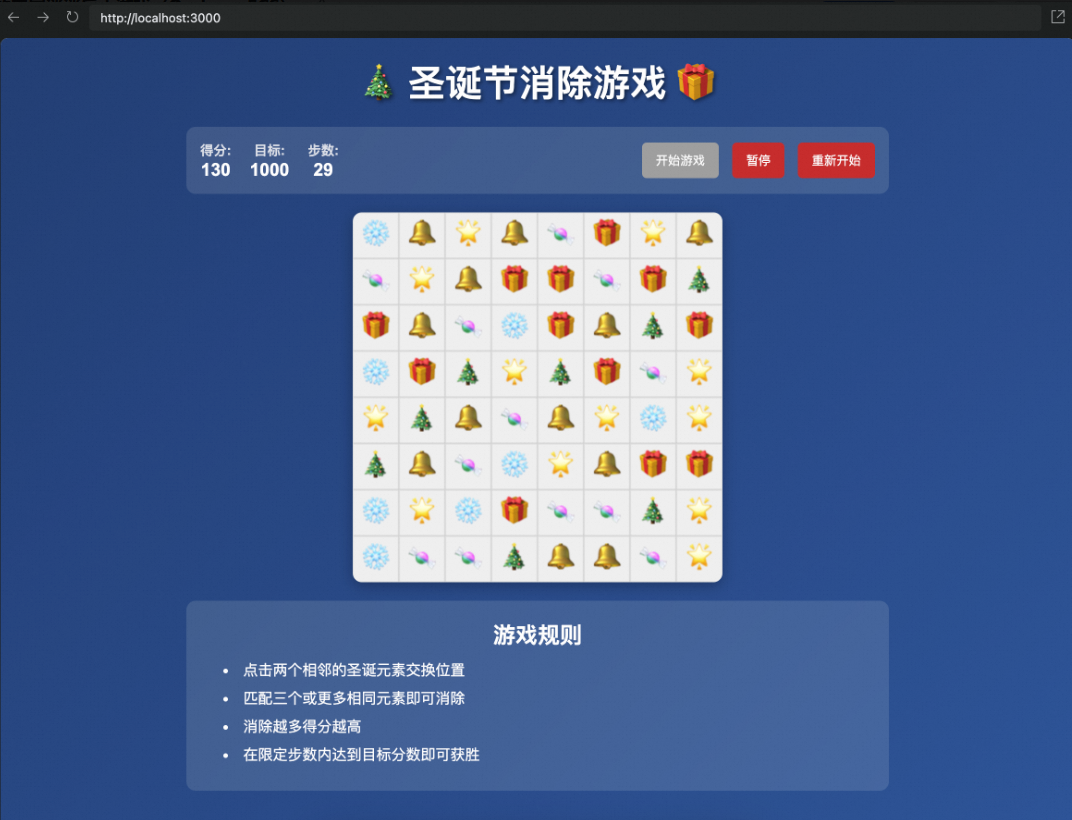 帮我生成一个圣诞主题的消消乐小游戏 -