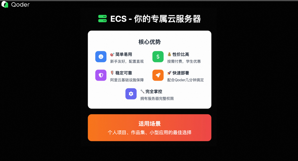更重要的是,ECS 新手友好、按量付费,还有学生优惠,非常适合个人项目、作品集展示或小型应用上线。