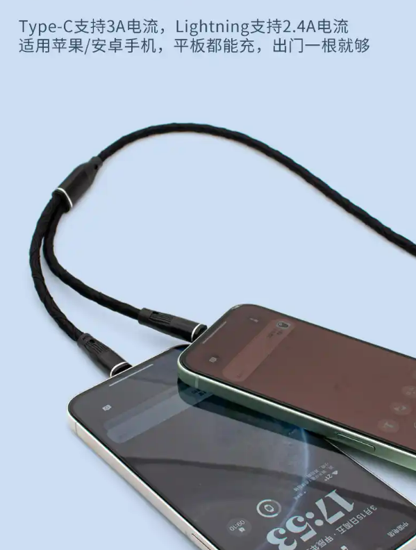 一拖二快充线的出现,不仅解决了线材冗余的物理痛点,更通过技术革新重新定义了移动充电的效率标准与使用体验。它不仅是差旅场景的"减负神器",更是数字时代下移动设备充电方案的革新者,用一根线材串联起效率、便携与未来的无限可能。