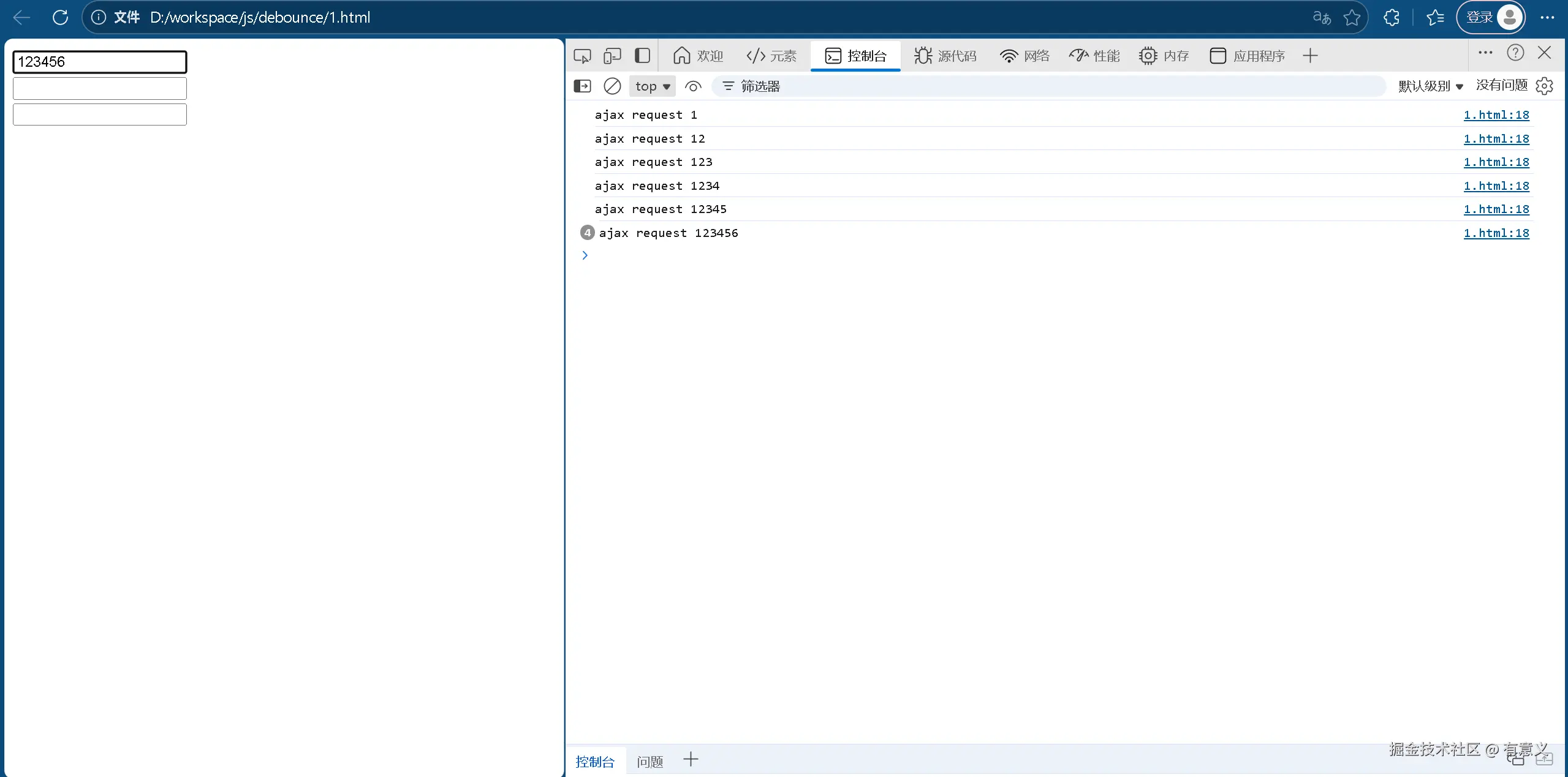 问题 :每当用户输入一个字符,就会触发一次 ajax() 调用。若用户输入 "hello",将产生 5 次请求,造成不必要的网络开销和性能浪费。
