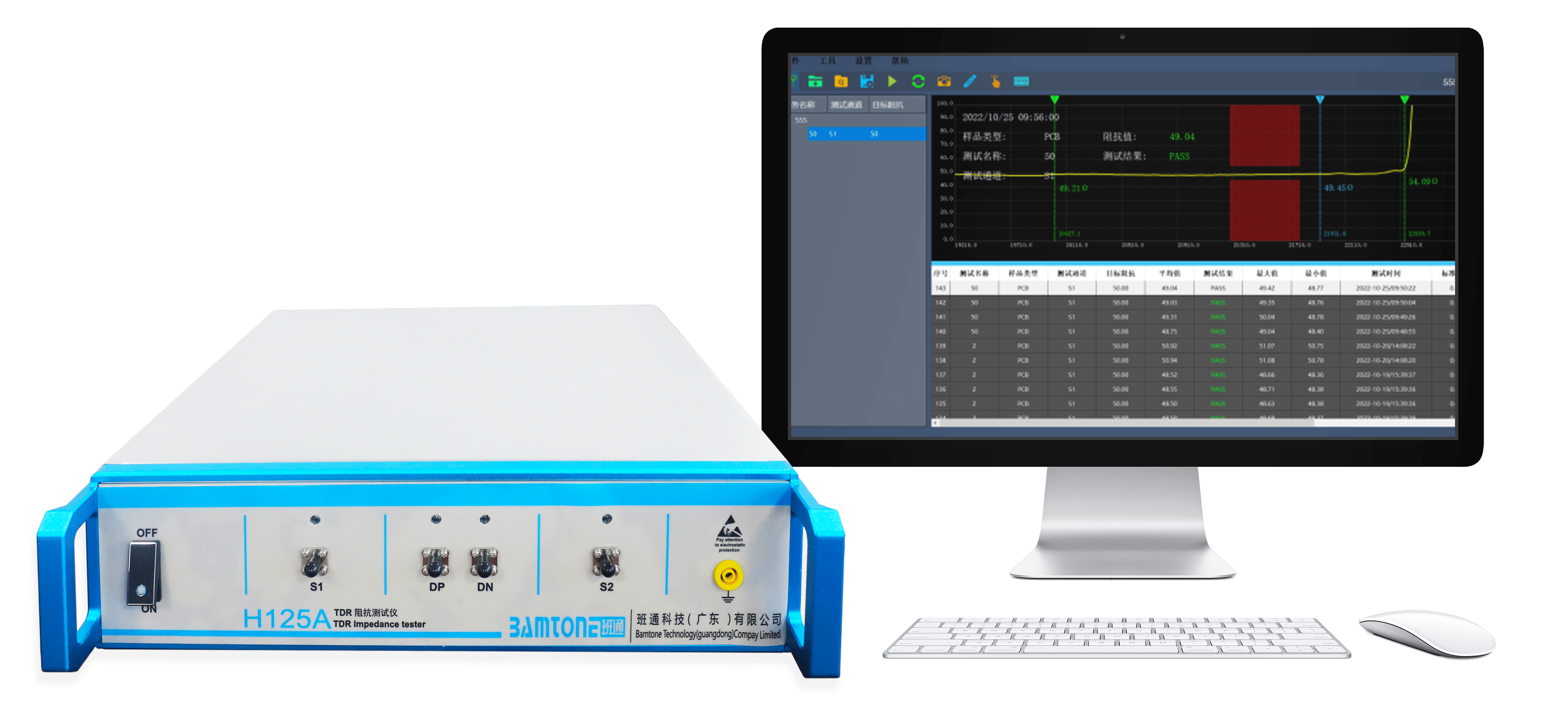 TDR阻抗测试仪是一种利用时域反射(Time Domain Reflectometry)技术来测量传输线(如高速PCB走线、电缆等)特性阻抗分布和阻抗不连续点位置的仪器。它通过向被测线缆或走线注入高速阶跃信号,并分析返回的反射波形来判断哪里阻抗偏离目标值。例如国内PCB测量仪器、智能检测设备等专业解决方案供应商,Bamtone班通自研推出的Bamtone H系列,有高达20 G的带宽,可用于高速PCB设计与生产中的阻抗控制与抽检。