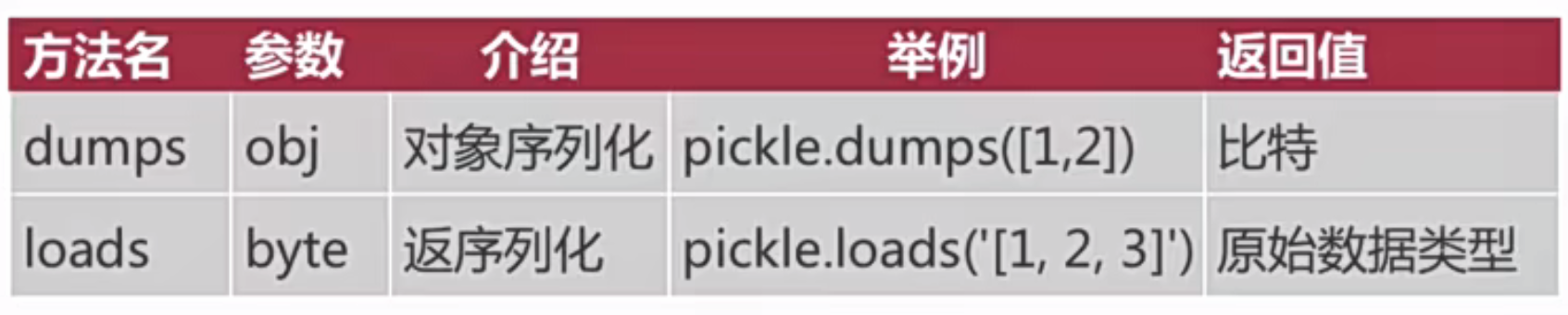 print(pickle.loads(e_pickle), type(pickle.loads(e_pickle))) # {'name': 'zhangsan'} <class 'dict'>