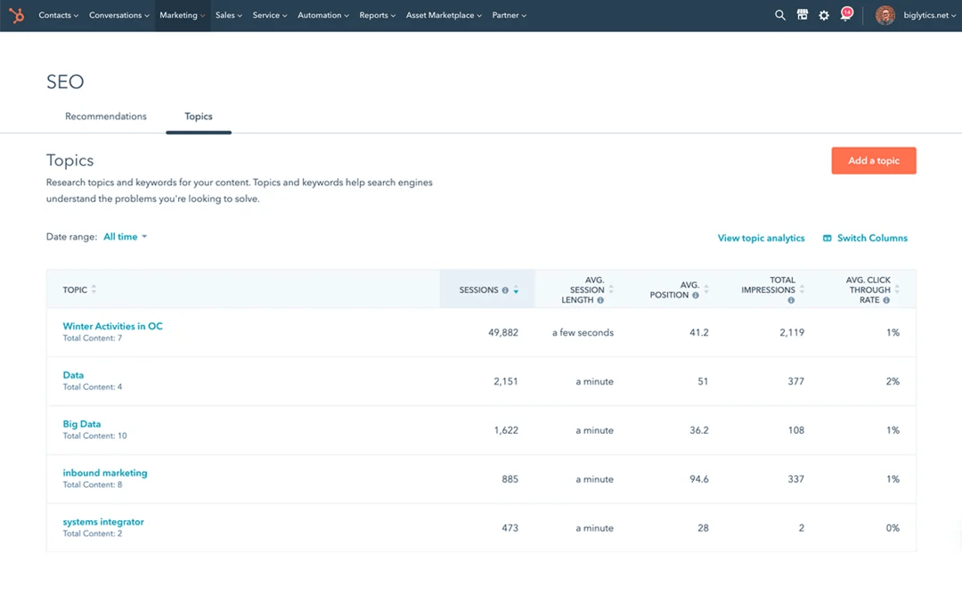 更棒的是,对于已经在使用 HubSpot 的企业来说,SEO 工具是 Marketing Hub 的内置功能,无需额外购买独立 SEO 软件。