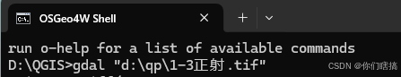 打开 OSGeo4W Shell(安装QGIS软件,附带会安装好gdal插件,就会有这个玩意,在开始菜单搜索即可,本文所有代码都在这里面输入,),输入: