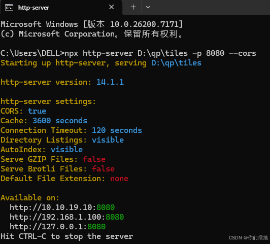 浏览器不能直接通过 file:// 加载瓦片(安全限制),需启动 HTTP 服务。(需要安装http-server)