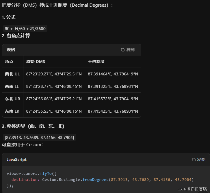 直接问AI即可计算完成,得到对应的四至边界坐标