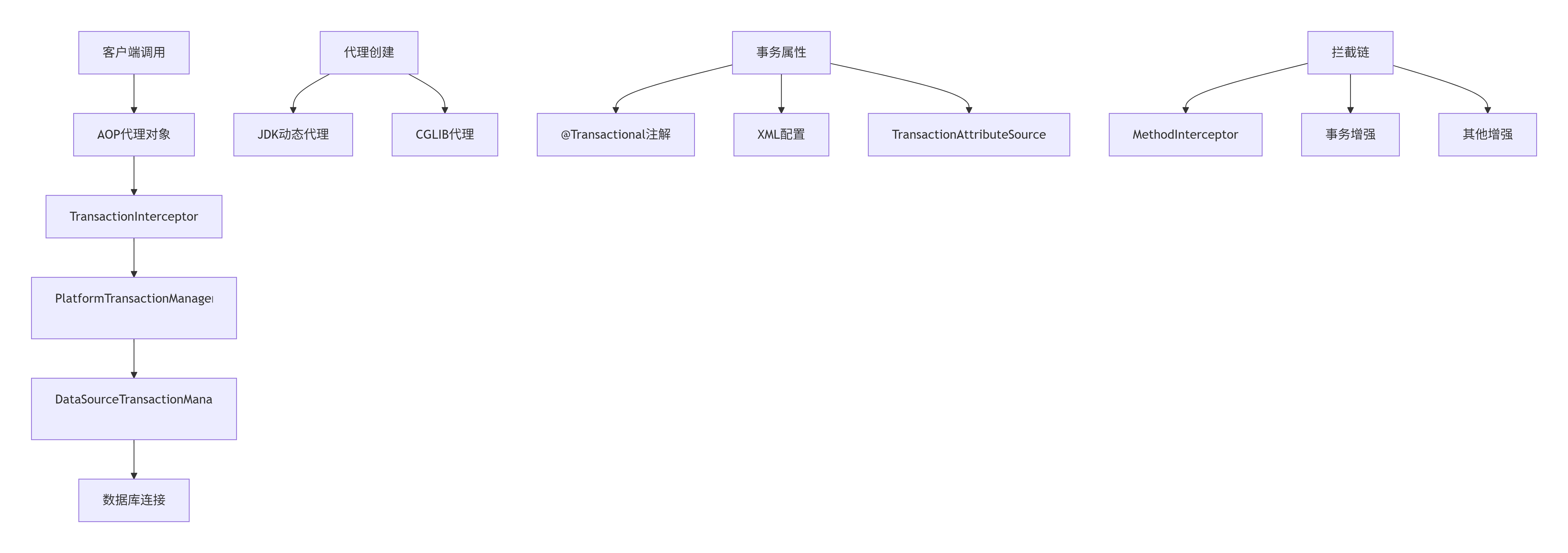 当应用启动并配置了@EnableTransactionManagement时,Spring会创建事务代理,这是声明式事务的基础: