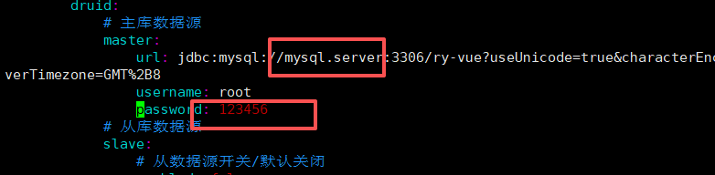 vim /opt/ruoyi/RuoYi-Vue/ruoyi-admin/src/main/resources/application-druid.yml