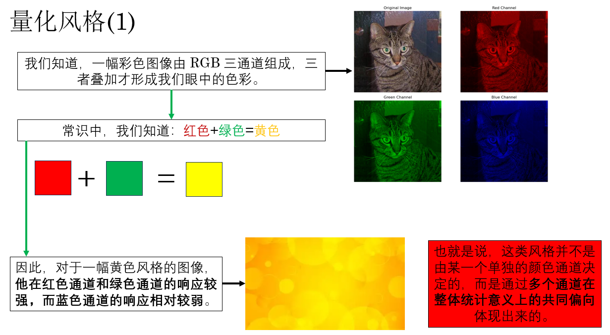 | Gram矩阵 | 对每对特征通道,在所有空间位置上求乘积并求和,归一化后得到 | 特征通道之间的"共现强度矩阵",类似观察特征是否喜欢一起出现 |