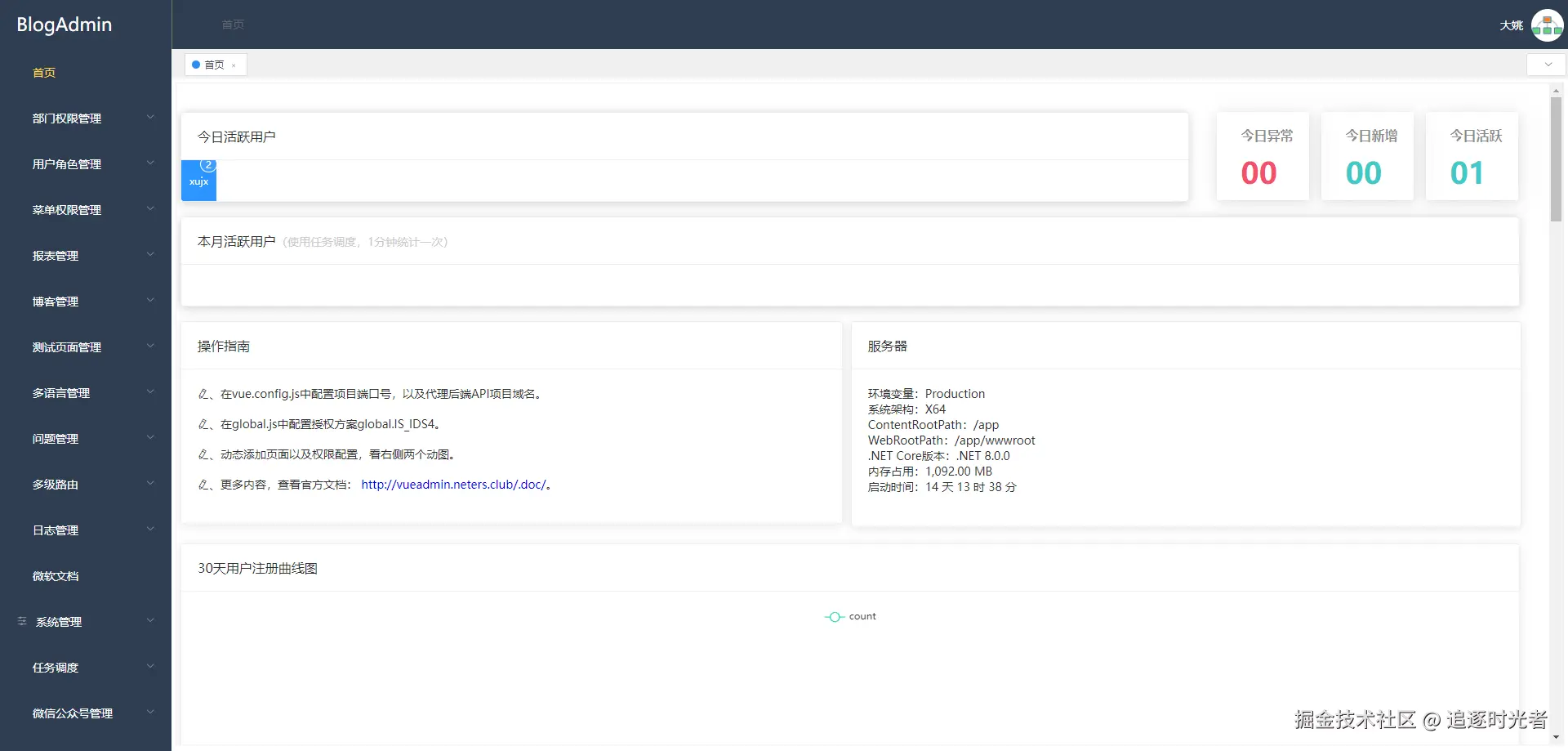 SimpleAdmin是一个小而美的通用业务型后台管理系统,专为解决开发过程中的痛点难点而生。Vue3+Vite+Vuex+JS,并在此基础上增加更人性化功能,后端基于.NET6/7+Furion,ORM采用Sqlsugar+单例模式,插件式开发。采用RBAC+多机构的权限管理模式,实现全网最灵活的接口级别数据权限控制,集成国密加解密,导入导出、导入导出、批量修改等常用插件。后端代码注释覆盖率>90%,并配备超牛皮的代码生成器和超详细的手摸手教学文档,非常适合二次开发。