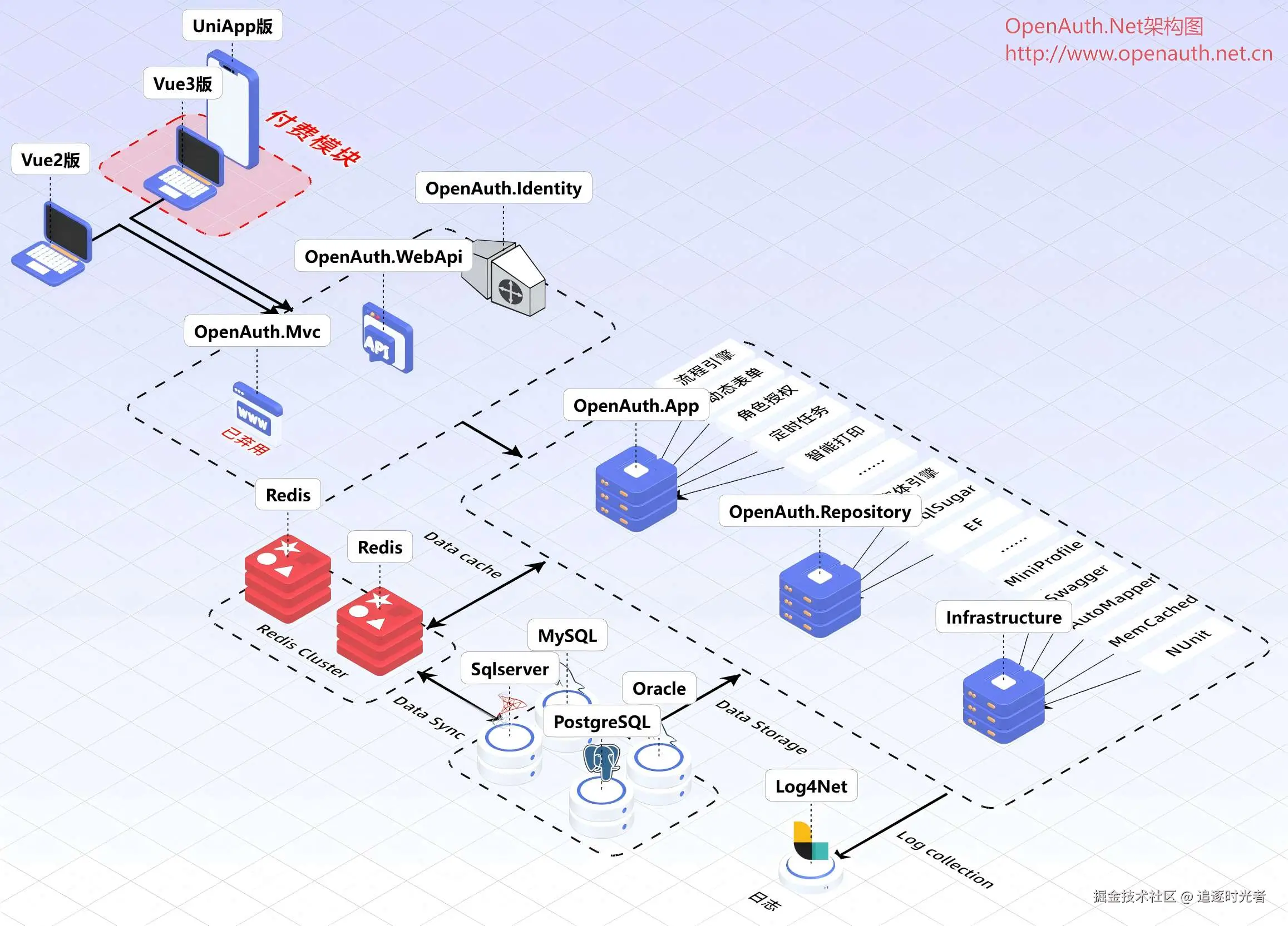 OpenAuth.Net 是一个基于 .NET 开源免费(Apache-2.0 License)的权限管理及快速开发框架,.NET 开源最好用的权限工作流系统。它源于 Martin Fowler 的企业级应用开发思想,并结合了最新的技术组合,如 SqlSugar、EF、Quartz、AutoFac、WebAPI、Swagger、Mock、NUnit、Vue2/3、Element-ui/plus、IdentityServer 等。该项目架构易于扩展,文档齐全且免费,特别适合中小企业使用。