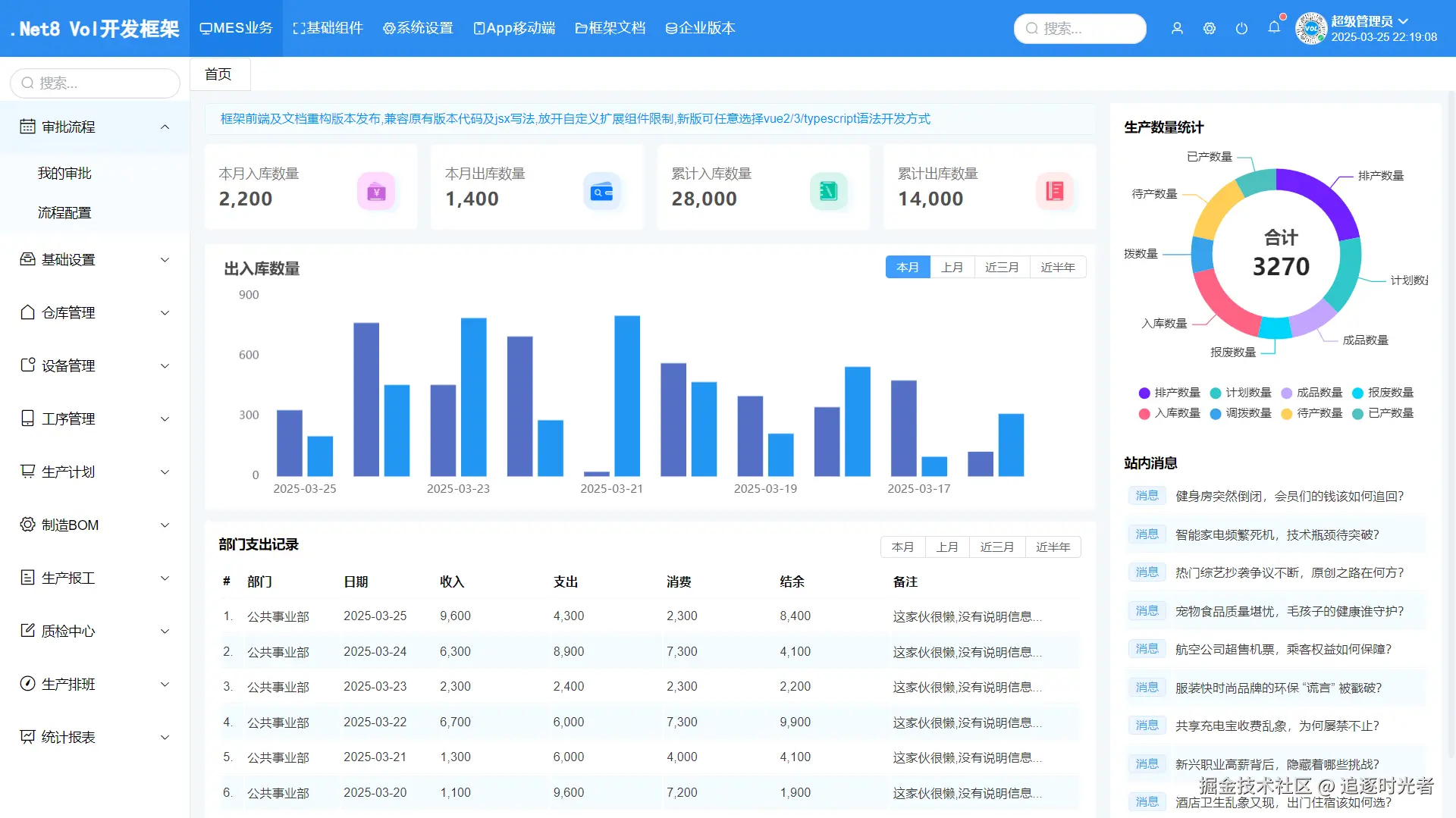 Vue.NetCore 是一款基于Vue(提供Vue2/Vue3版本)和.Net Core前后端分离、开源免费(MIT License)、强大、跨平台的快速开发框架,并且框架内置代码生成器(解决重复性工作,提高开发效率),支持移动端(iOS/Android/H5/微信小程序)。