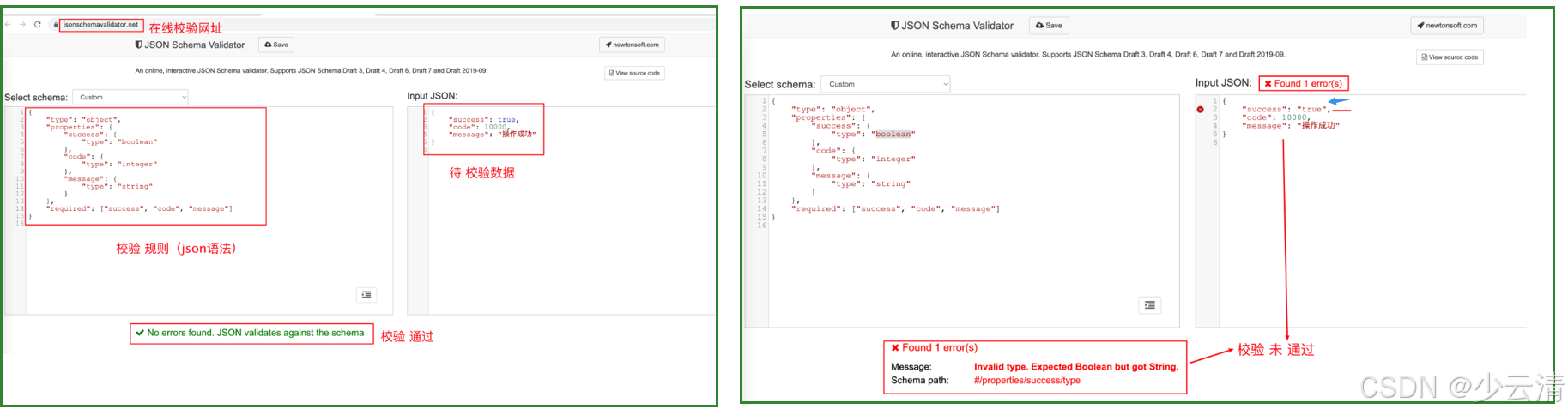 - [2.2 JSON Schema校验方式-2种](#2.2 JSON Schema校验方式-2种)