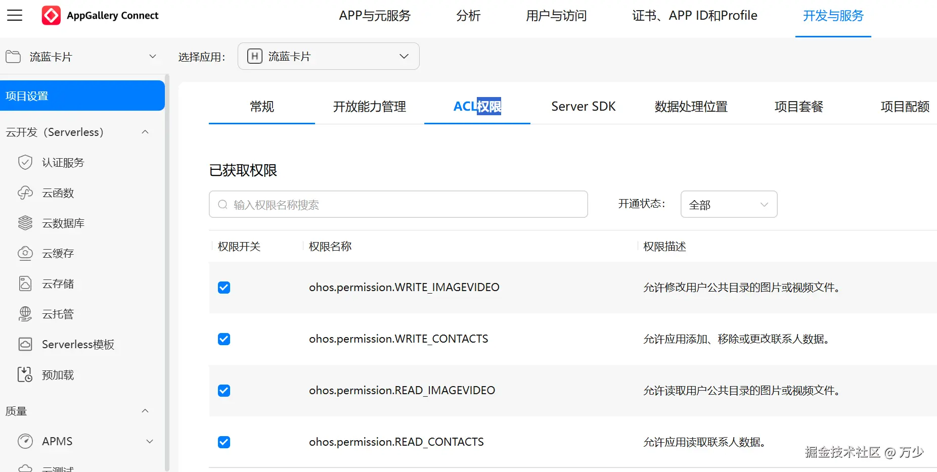 这一部分权限需要在AGC平台上进行申请,接着跟着生成最新的调试和发布证书,否则开发调试和上架都会因为权限问题导致失败。