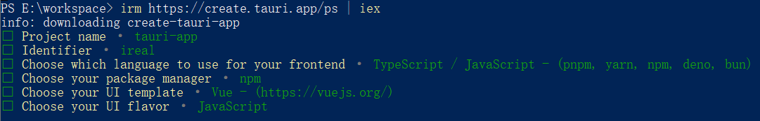 irm https://create.tauri.app/ps | iex