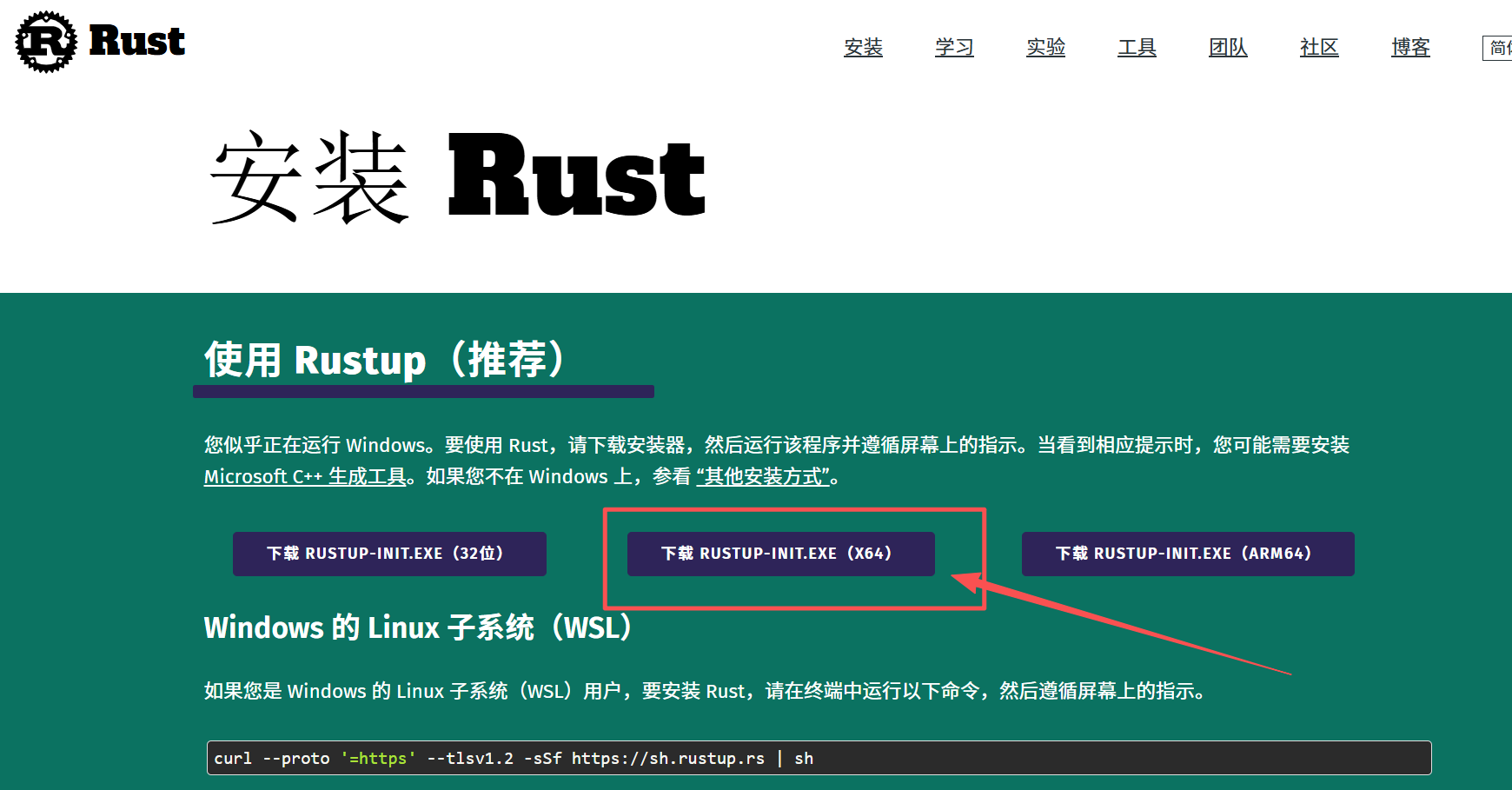 前往 https://www.rust-lang.org/zh-CN/tools/install 下载 rustup。