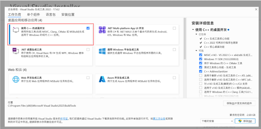 1.下载 Microsoft C++ 生成工具 安装程序并打开它以开始安装。