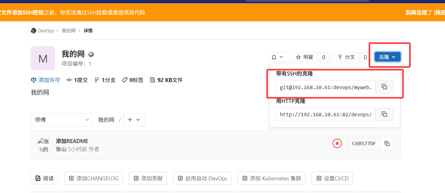 - Git 仓库管理:支持私有 / 内部 / 公共三种仓库类型,完整兼容 Git 所有命令