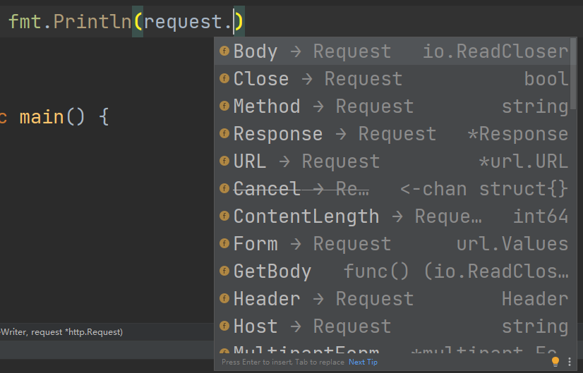 fmt.Println("REQUEST METHOD: ", request.Method)