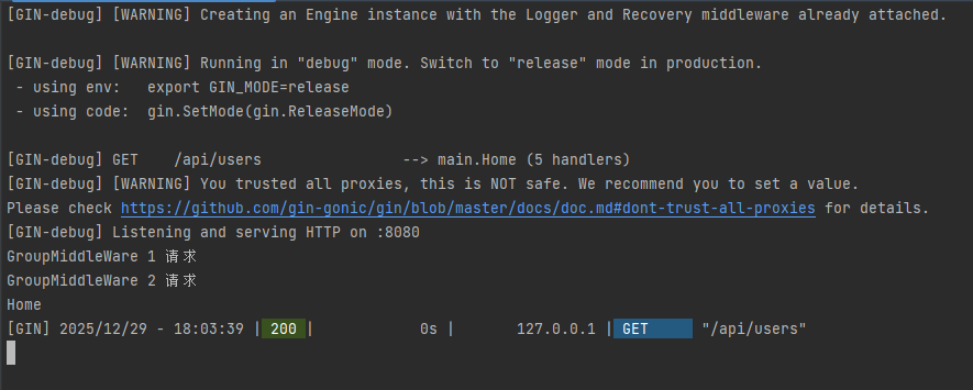 // 等同于 g.Use(GroupMiddleWare1) + g.Use(GroupMiddleWare2)