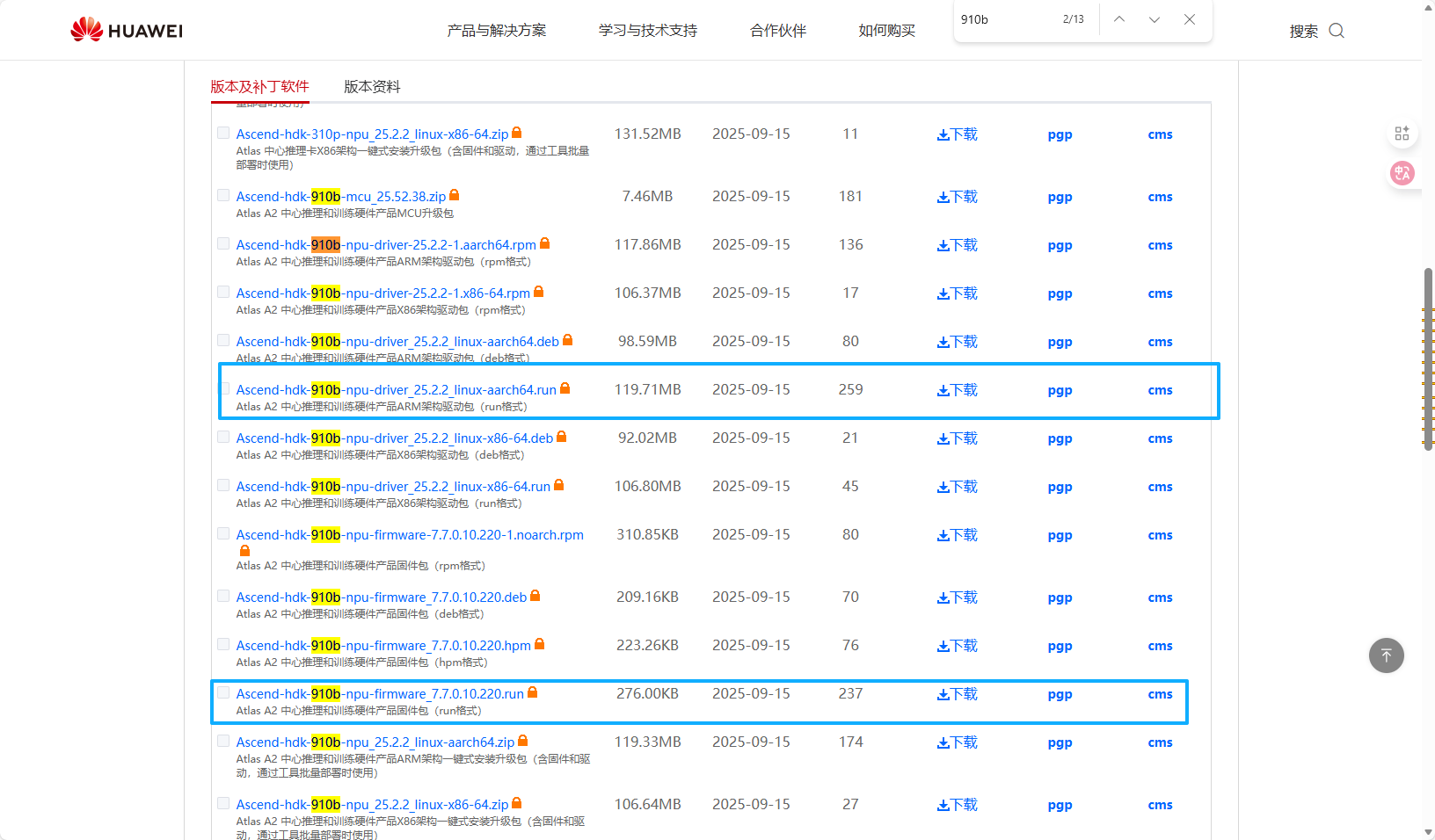 官方渠道:访问昇腾社区 → 然后根据自己的服务器系统 CPU 架构、昇腾芯片型号官网下载: