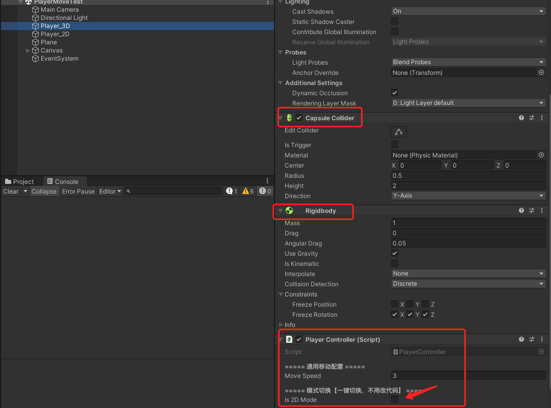 3D玩家的创建(无需勾选脚本上的Is2D Mode!!! ):