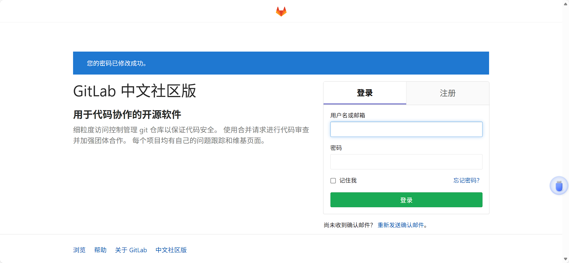 以上配置重启gitlab容器并访问192.168.10.17主机