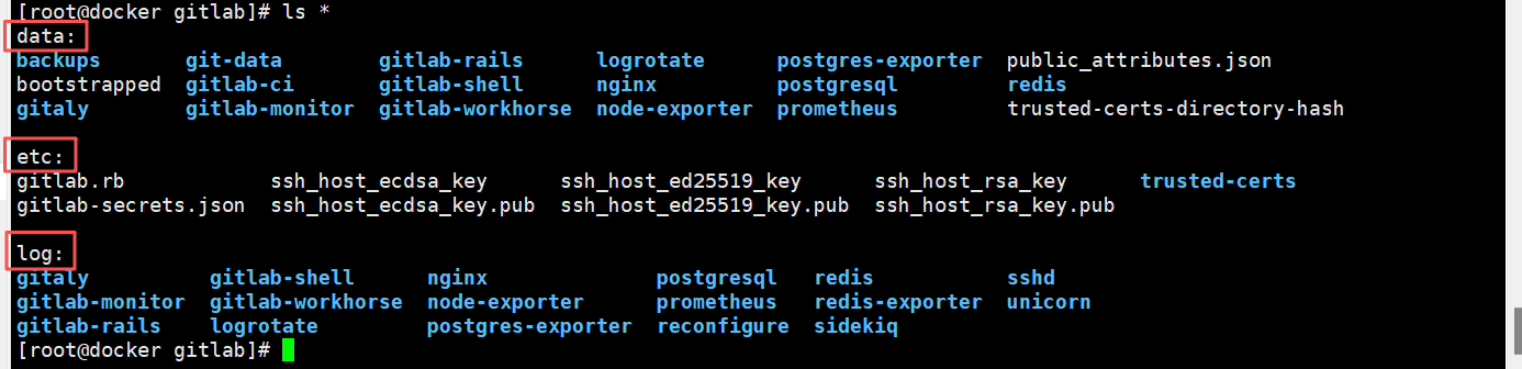 [root@gitlab opt] mkdir -p /data/gitlab/etc/ /data/gitlab/log/ /data/gitlab/data