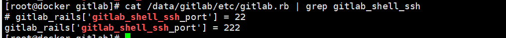 [root@gitlab gitlab] sed -i "/gitlab_shell_ssh_port/a gitlab_rails['gitlab_shell_ssh_port'] = 222" /data/gitlab/etc/gitlab.rb