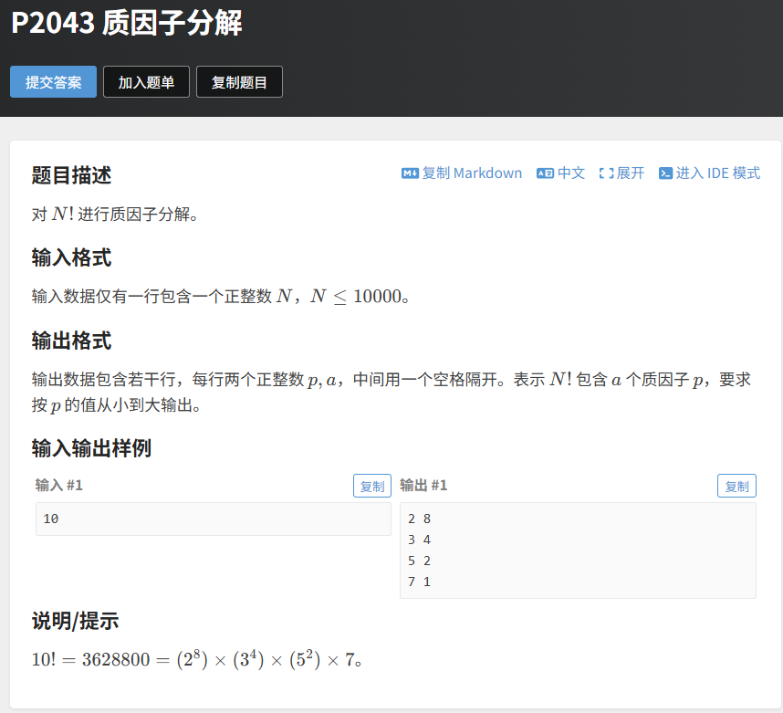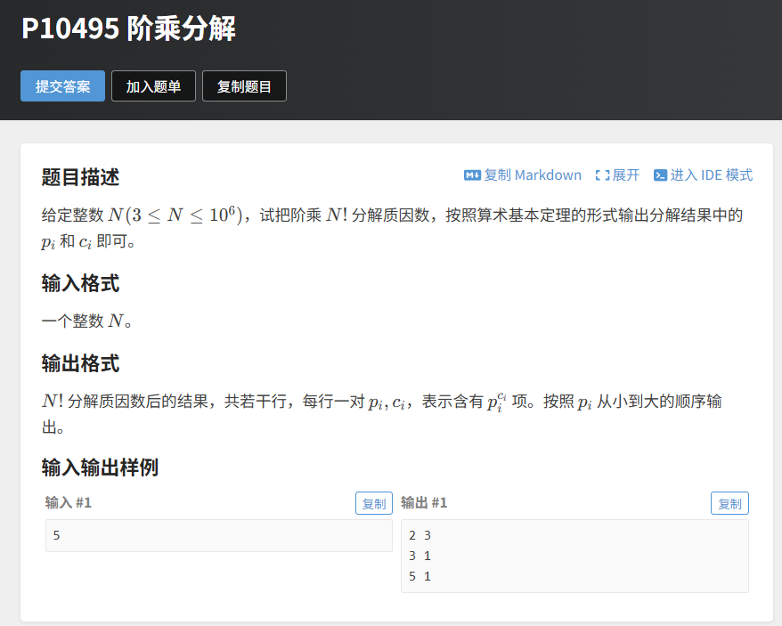 五、实战例题 2:洛谷 P10495 阶乘分解(强化版)