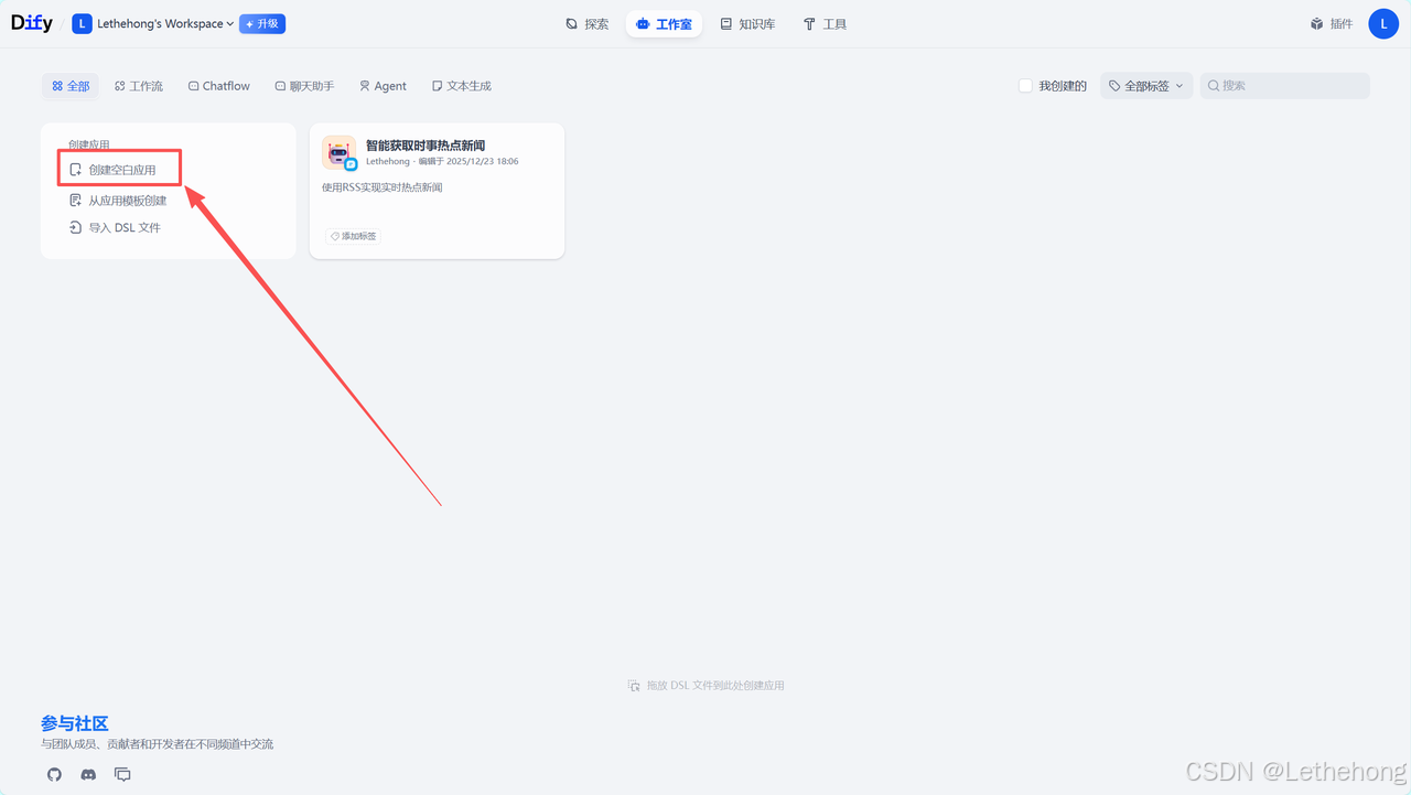 打开 Studio → 在窗口底部点击 创建空白应用。