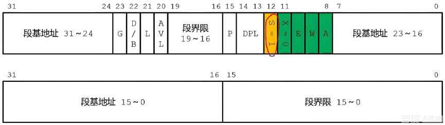 S 标志:描述符类型(1 = 代码 / 数据段,0 = 系统段)。