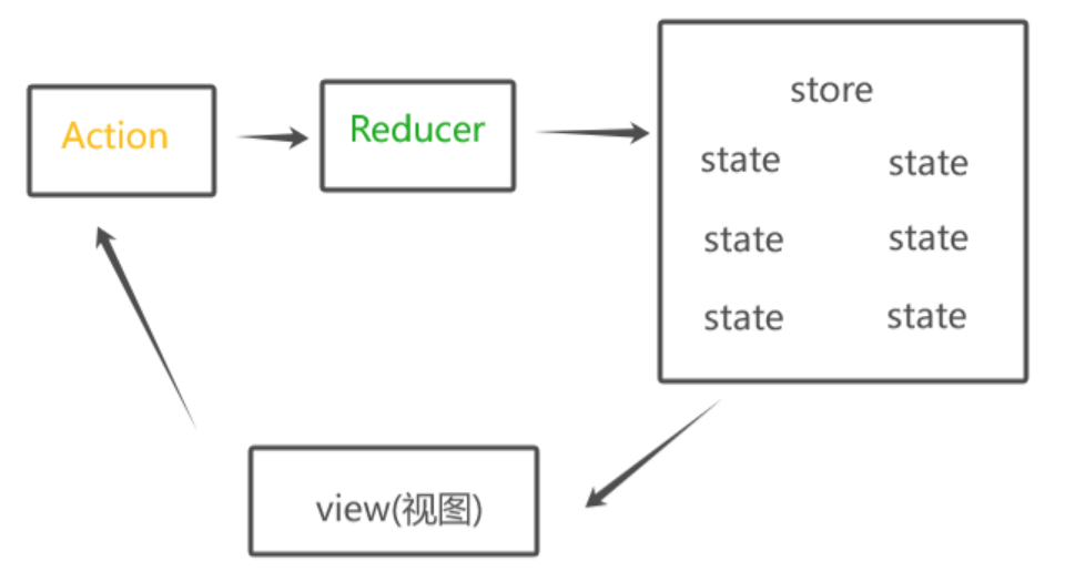 Redux把整个数据修改的流程分成了三个核心概念:State、Action、Reducer