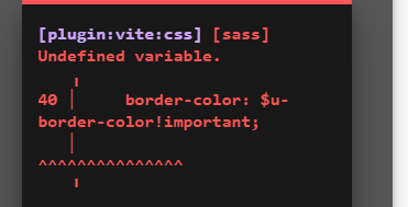 进行到这一步的时候会报错 核心问题是SCSS 变量未定义 ,具体表现为代码中引用的 $u-border-color 变量不存在,导致编译失败。