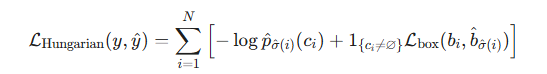 ,模型就使用匈牙利损失函数进行训练。该损失函数由分类损失和回归损失组成: