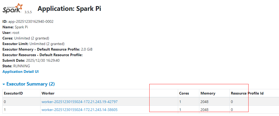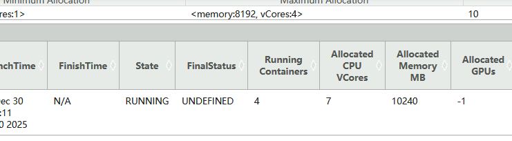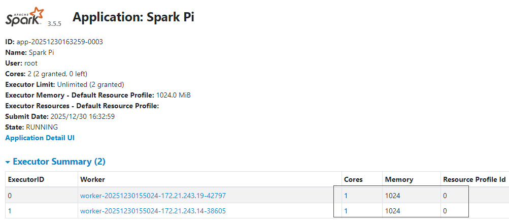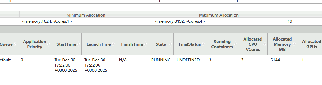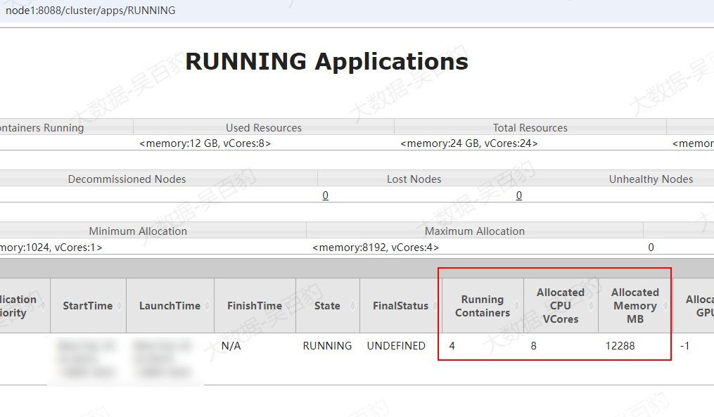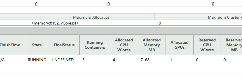 提交任务后,可以通过WebUI查看当前Application使用资源情况: