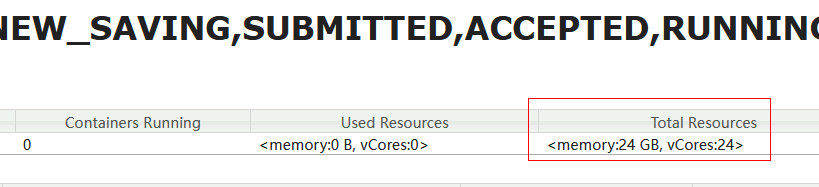 在我们的 YARN 集群中,有 3 个 NodeManager 节点。默认情况下,每个节点的资源为 8GB 内存(由 yarn.nodemanager.resource.memory-mb 配置)和 8 个 CPU 核心(由 yarn.nodemanager.resource.cpu-vcores 配置)。通过 YARN 的 Web UI,可以看到集群的总资源为 24 核 CPU 和 24GB 内存。