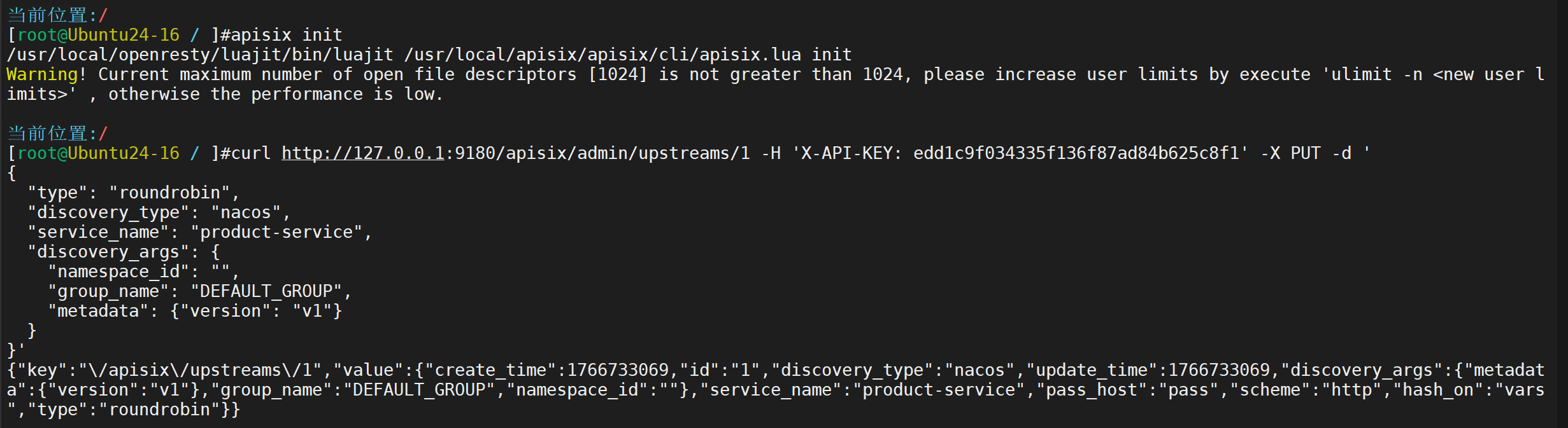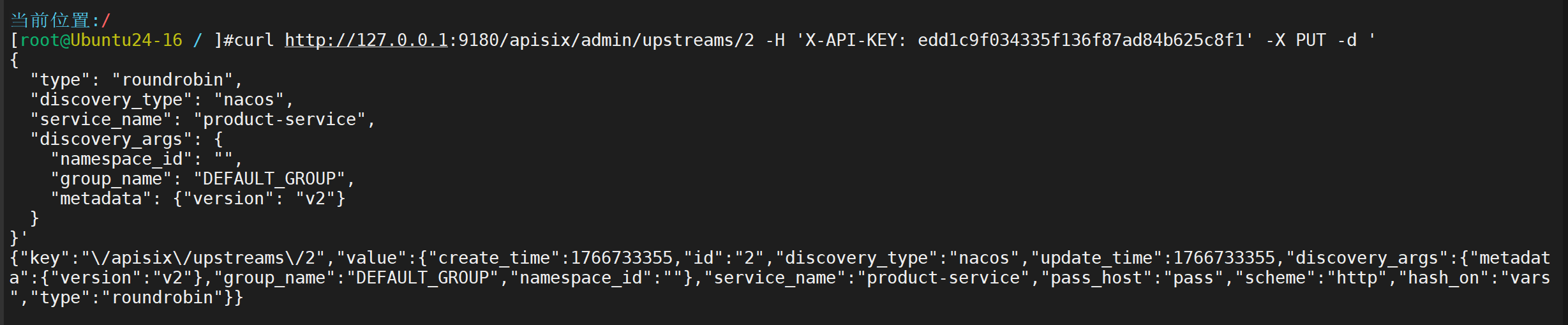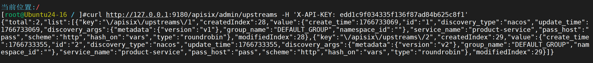 用 Admin API 创建两个 upstream,从 Nacos 拉取服务