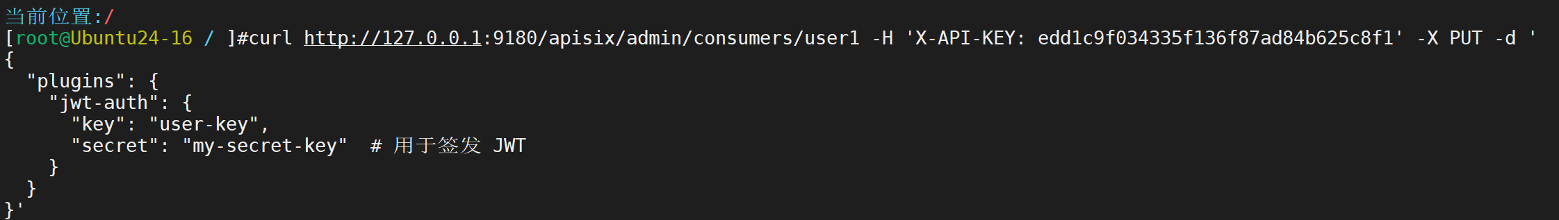 curl http://127.0.0.1:9080/apisix/plugin/jwt/sign?key=user-key -i # 返回 JWT token -