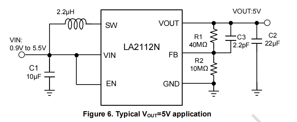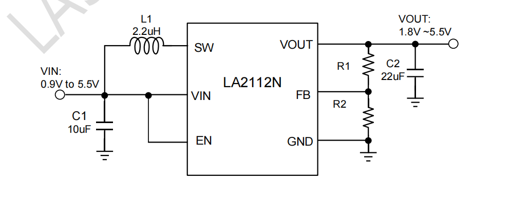 ***概述:***LA2112N是一款同步、超低静态电流、高效率、恒定关断时间、升压(升压)转换器,采用真正输出断开设计。该产品专为使用碱性电池、镍氢可充电电池、锂锰电池或可充电锂离子电池供电的设备设计,轻载工况下的高效率对实现长续航至关重要。LA2112N可在输入电压低至0.9V时启动,并提供浪涌电流限制和输出短路保护功能。集成的P沟道同步整流器提升了效率,无需外接肖特基二极管。P沟道MOSFET可在关机时切断输出与输入的连接。LA2112N采用SOT23-6封装形式。