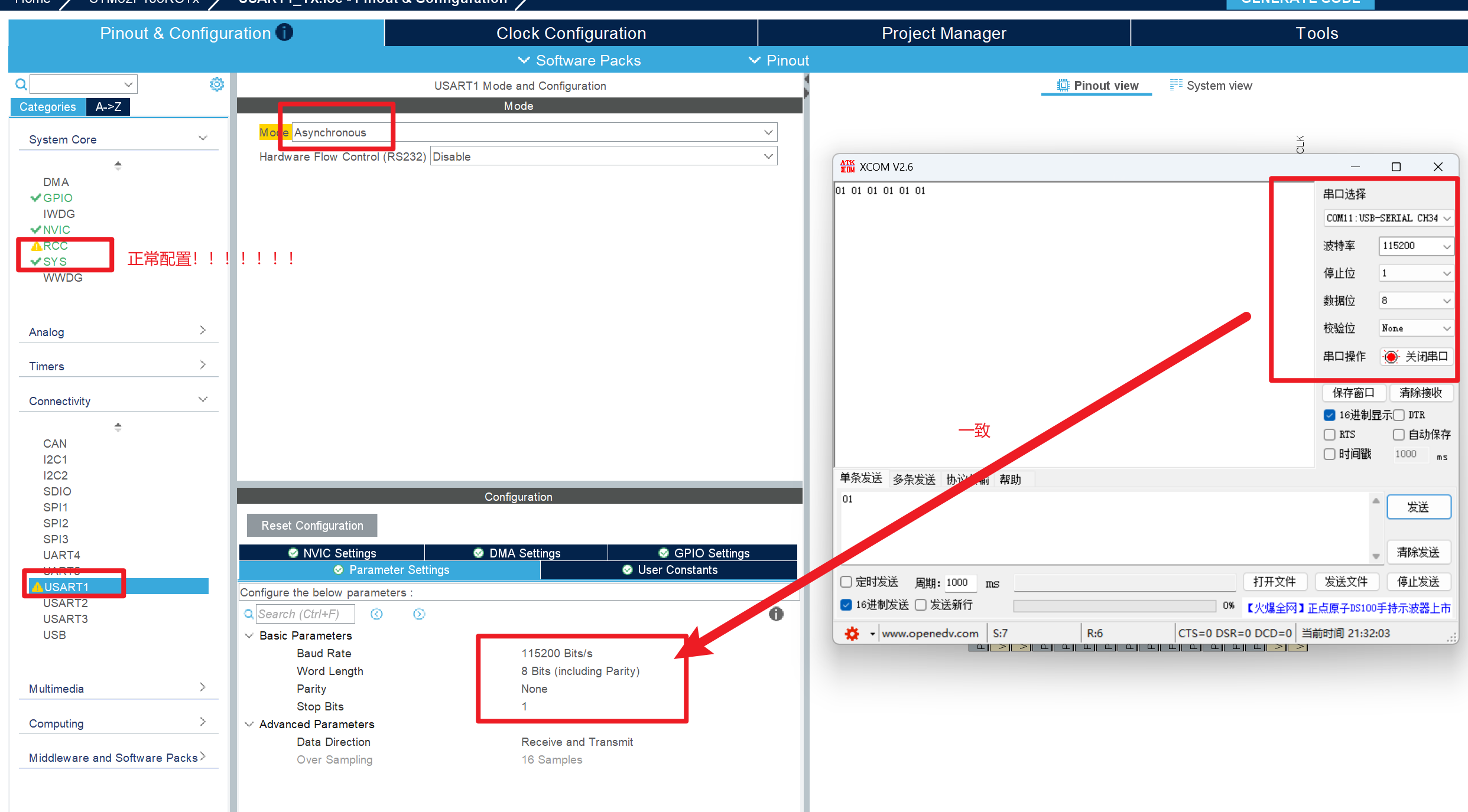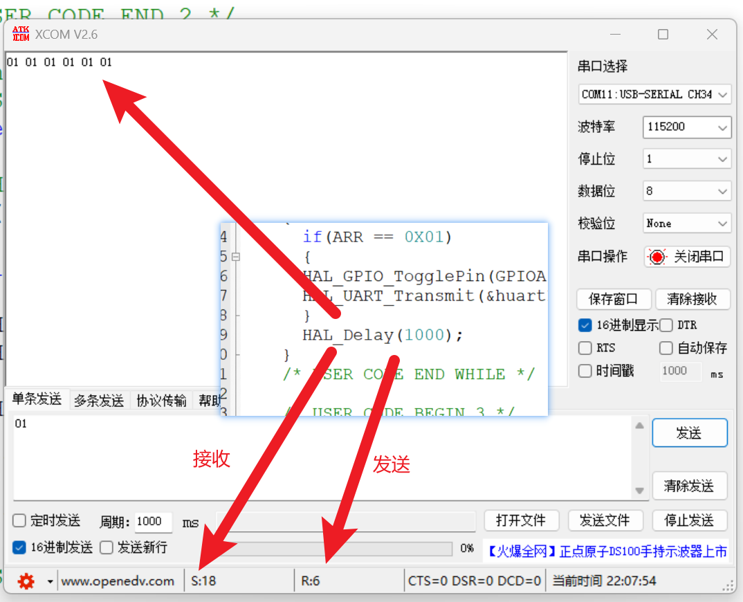 HAL_UART_Transmit_IT(&huart1, buf, 1); // 非阻塞回传