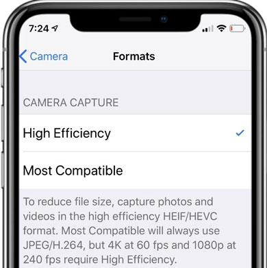 最新款 iPhone 拍摄的照片默认保存为HEIF 格式。这种格式比 JPEG 格式文件更小,同时还能保持图像质量。但是,它的兼容性可能并非最佳。为了节省 iPhone 上的空间,您可以选择更高效的文件格式。