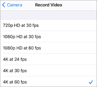 步骤 3. 选择较低的分辨率,例如 1080p 30 fps 或 720p 30 fps。