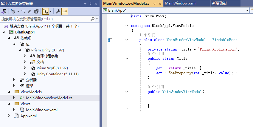 只需要添加这一个包即可,它会包含Prism.Core、Prism.WPF和Microsoft.Xaml.Behaviors.WPF三个包
