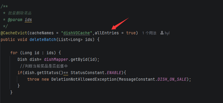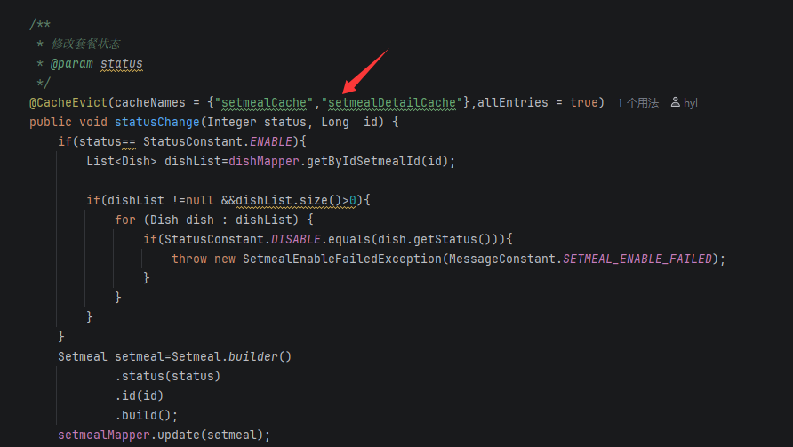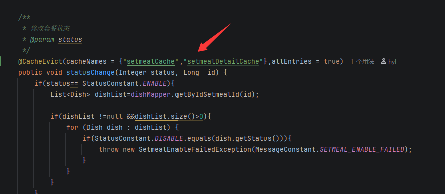 同理对于修改、状态修改、批量删除菜品这些,如果要清楚对应的缓存操作比较繁琐,所以这里我们选择清除所有菜品的缓存!