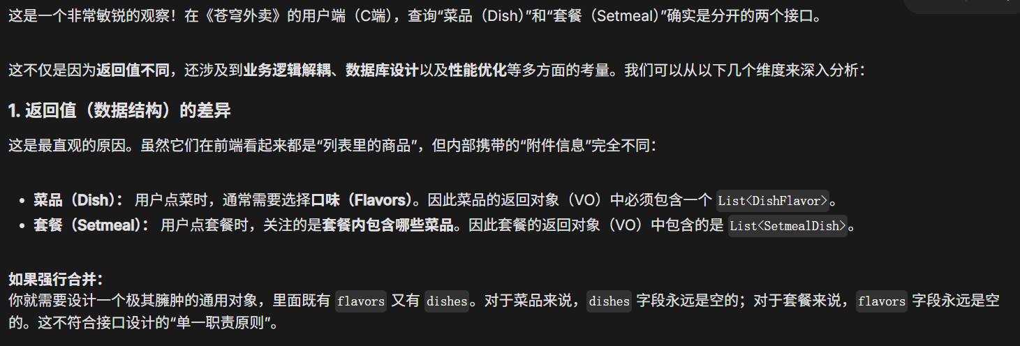 这里我们的缓存采用Redis,由于我们用户端是采用的是两个controller一个是DishController一个是setmealController用于查询菜品以及套餐的数据并且显示到前端。下图是为什么要分开做的原因: