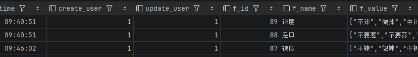 由于一个dish有多个flavor所以会有堆叠同一个id有两行,因为它们的flavor不一样如下图所示: