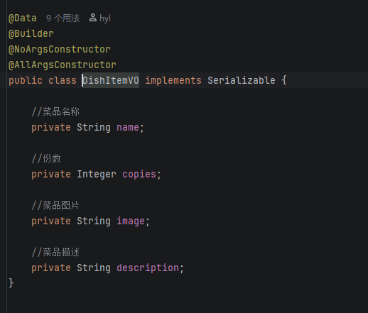 column表示的是数据库的字段名字,property表示的是上面DishVO的属性名需要一一对应