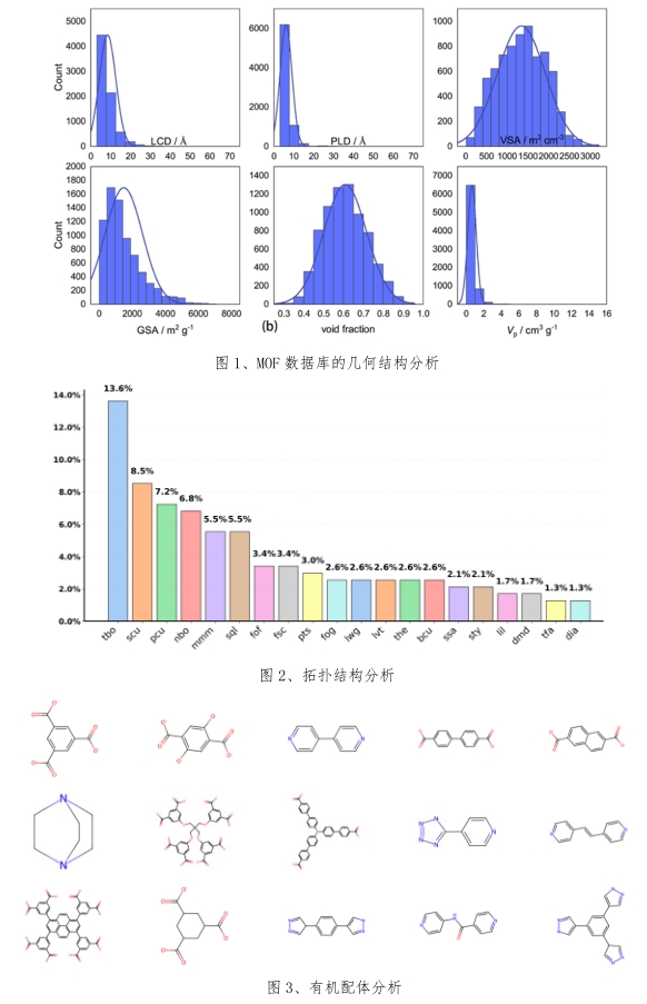Case 1:使用 MOSAEC 算法处理 CoRE-MOF、QMOF 数据库,进行结构合理性校验与数据清洗,确保所有结构满足化学合理性
