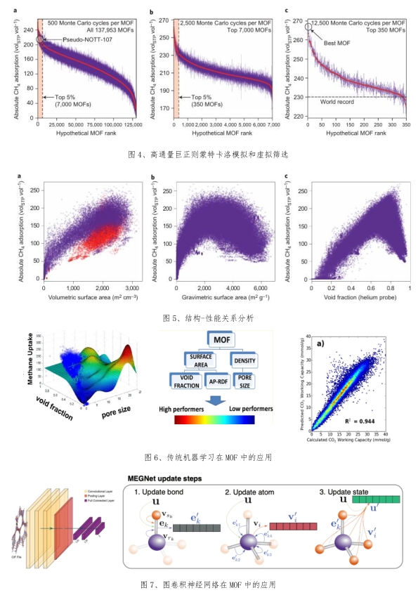 通过结合量子化学计算、分子模拟与机器学习,研究者能够从海量结构数据中挖掘"结构-性能"关系,预测未知 MOFs 的吸附、分离、稳定性等关键性质,实现高通量虚拟筛选与定向设计,极大加速新材料发现进程。
